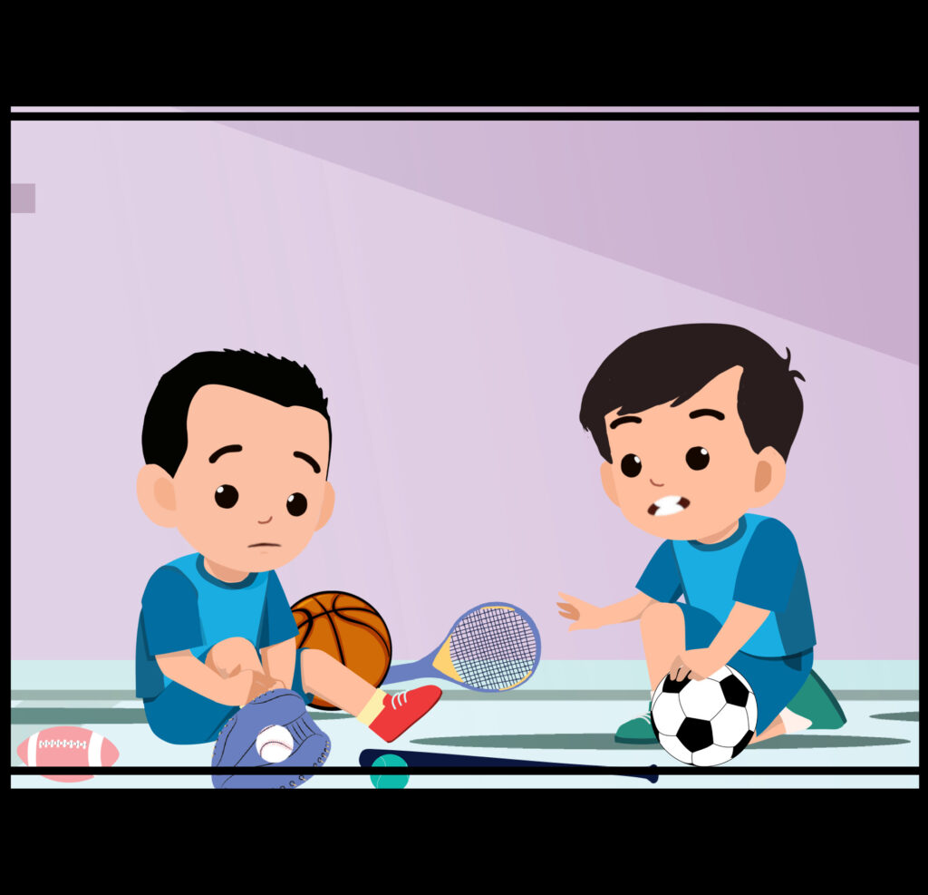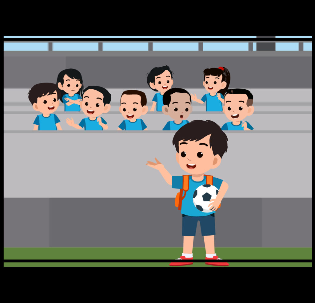 Banu bertanding sepak bola bersama tim sekolah. Kiki, Didi, dan teman-temannya menyaksikan pertandingan itu sambil bersorak-sorai memberi semangat. Mereka meneriakkan, “Banu, Banu, Banu! Yes, yes,...